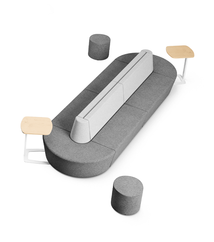 O sistema de sofás Spin proporciona configurações flexíveis para os mais diferentes arranjos de espaços colaborativos. São módulos lineares, curvos, puffs e acessórios que tornam os ambientes coletivos mais produtivos e versáteis.